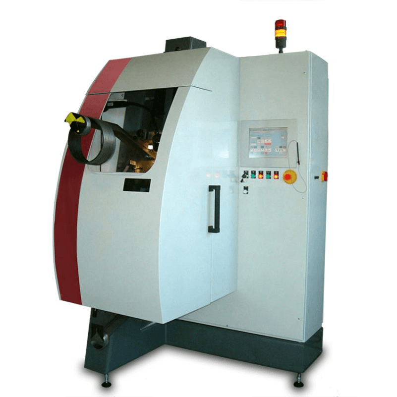 Dies wurde durch einen präzisen, sehr rasch drehenden Rundtisch erreicht. So können während des Bearbeitungsvorganges die Entnahme der Beschrifteten und die Bestückung mit unbeschrifteten Teile erfolgen.